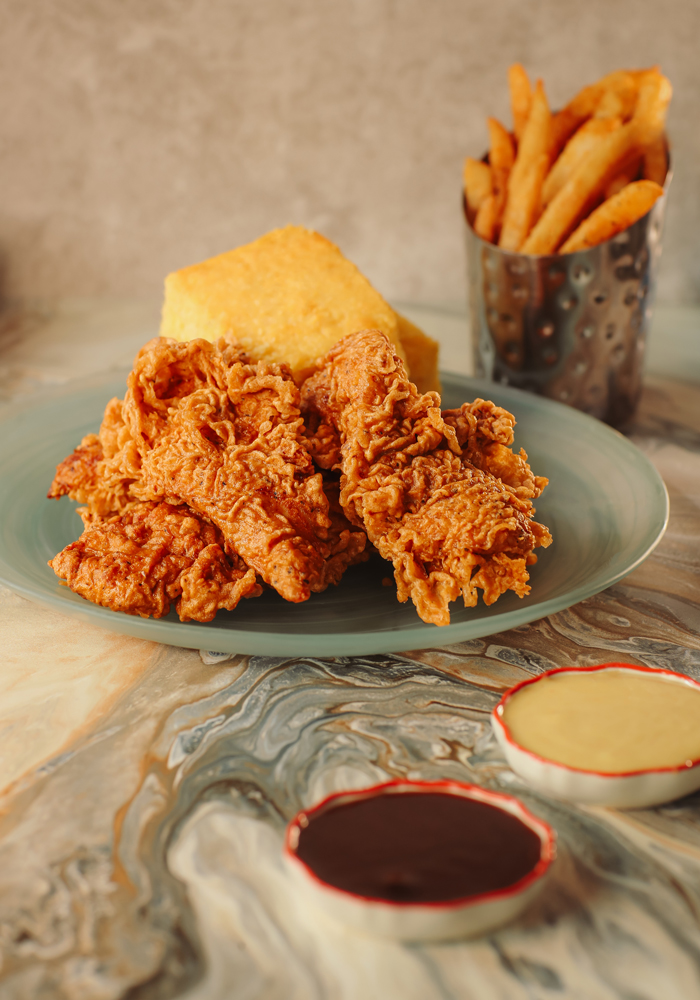 Salad/6, Mac N' Cheese/4, Cheesy Potatoes/4, Seasoned Fries/4, Basmati Rice/4, Vegetable Medley/4, Skillet Vegetables/4, Cornbread/4, BBQ Baked Beans/4, Coleslaw/4, Italian Greens/6, Brussels/6, Redskin Mashed/6, Sampler/Any 3 $4 Sides for $10
